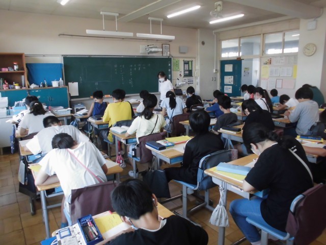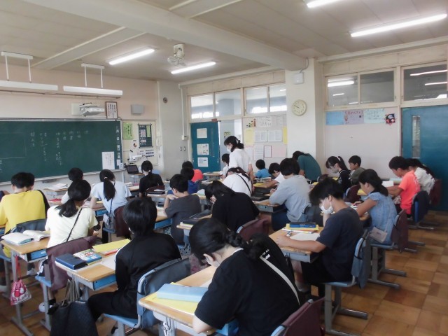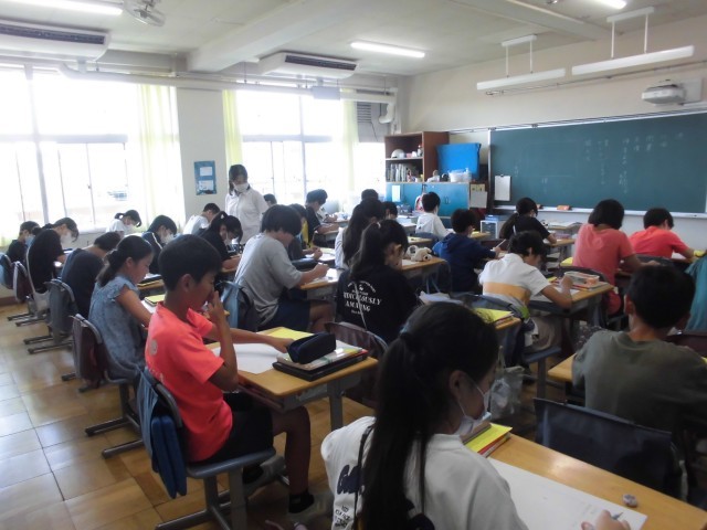 6日(金)2時間目、6年1組は国語の時間でした。「詩のたねカード」をもとに、詩を書きました。夏休みの思い出や習い事のこと、家族との触れ合いなどを短い言葉にして書いていました。