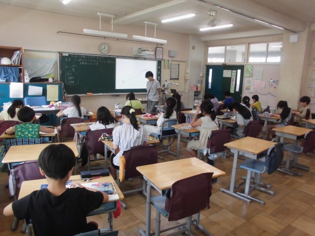 6日(金)4時間目、4年生は算数の時間でした。「垂直・平行と四角形」の単元です。今回は、垂直な直線の書き方を考えました。三角定規や定規を使って、実際に書くこともしました。