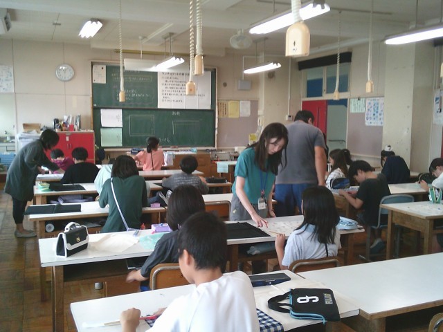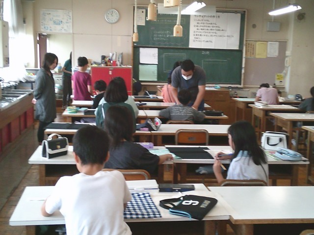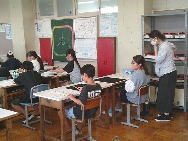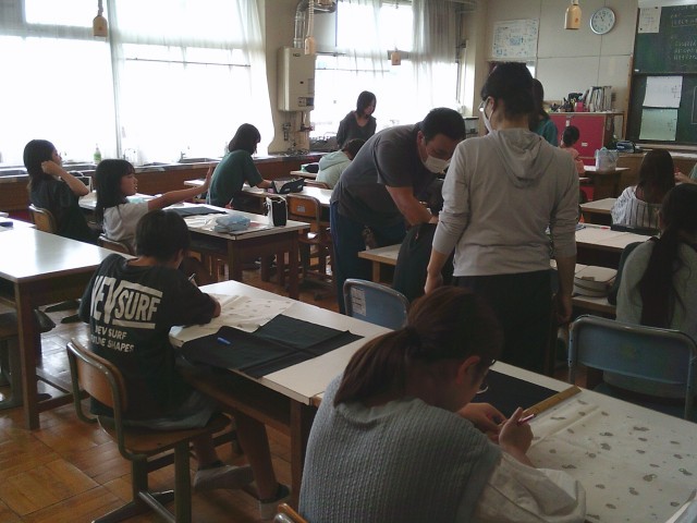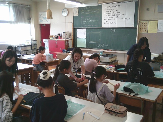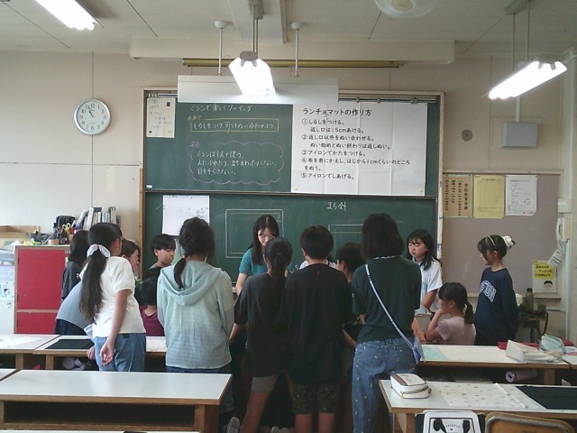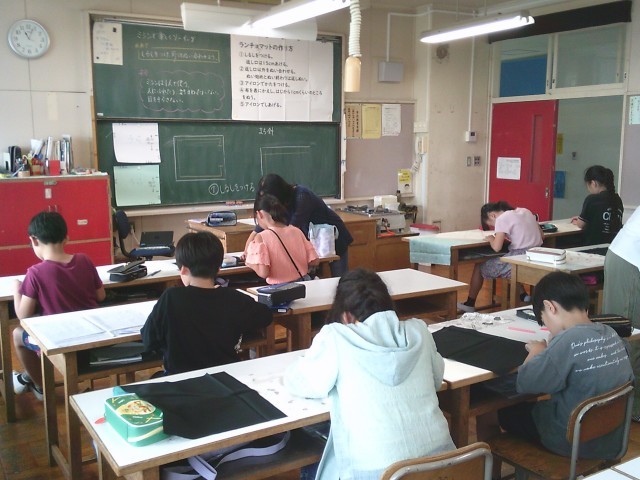 6日(月)3・4時間目、5年2組は家庭科の時間でした。5年生は前回から「ミシンで楽しくソーイング」の学習に取り組んでいます。「ランチョンマット」を製作するために、周囲の縫い代を2cm、返し口を15cmとしてチャコペンでしるしをつけました。作業前に先生の机の周りに集まり、しるしのつけ方を習いました。2組の学習の時も保護者の皆様にボランティアとしてお越しいただきました。子どもたちのためにありがとうございました。