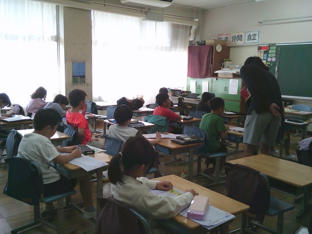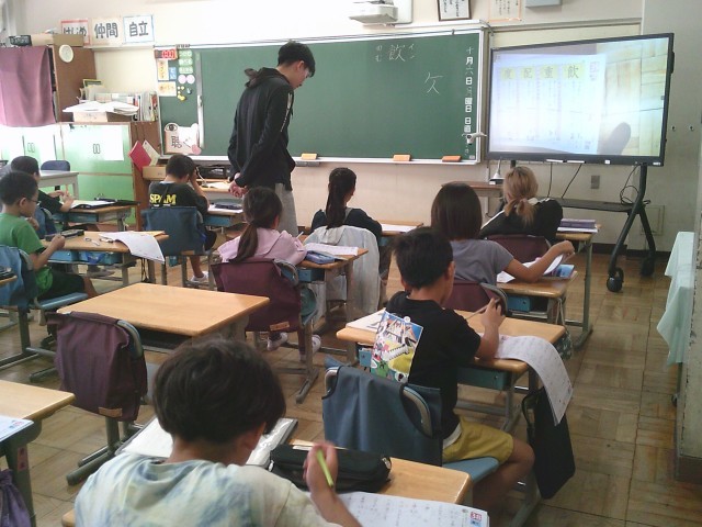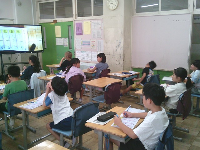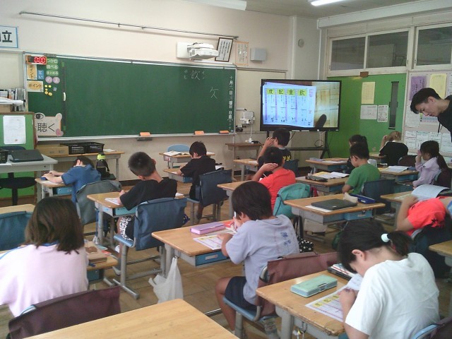 6日(月)1時間目、3年1組は国語の時間でした。新出漢字の学習をしていました。今回は、「飲」「重」「配」「度」について読み方や筆順、言葉、短文づくりをしました。