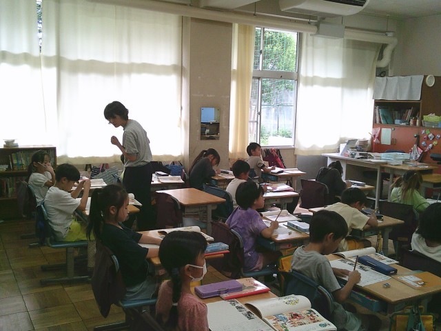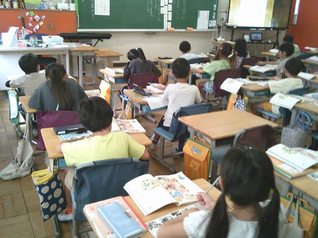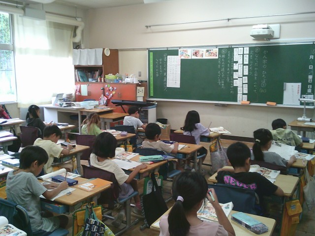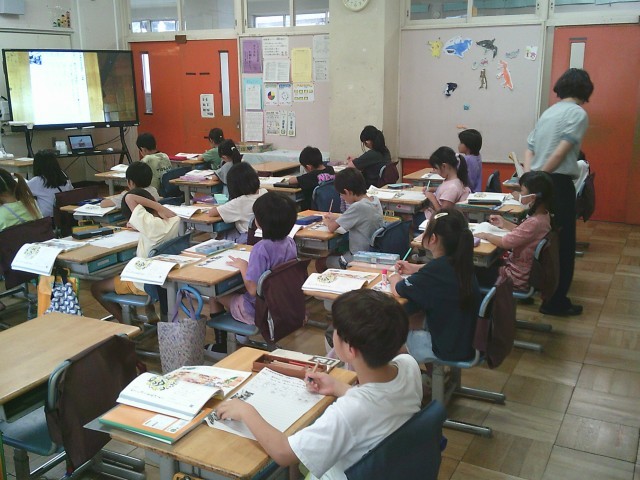 6日(月)3時間目、2年1組は国語の時間でした。講師の先生との学習です。今回は、「かん字のひろば③」に取り組んでいました。習った漢字を含む言葉16種類を使って文作りをしました。子どもたちは一つの文の中に一つでも多くの漢字を入れようと考えながら文作りをしました。