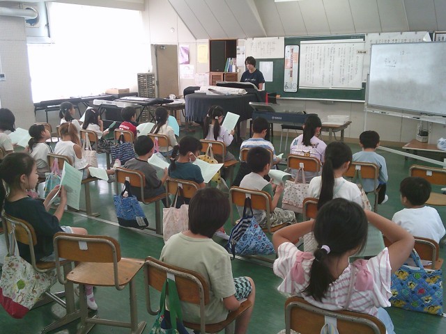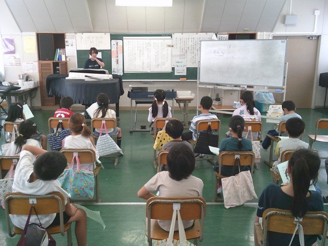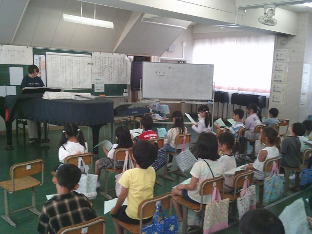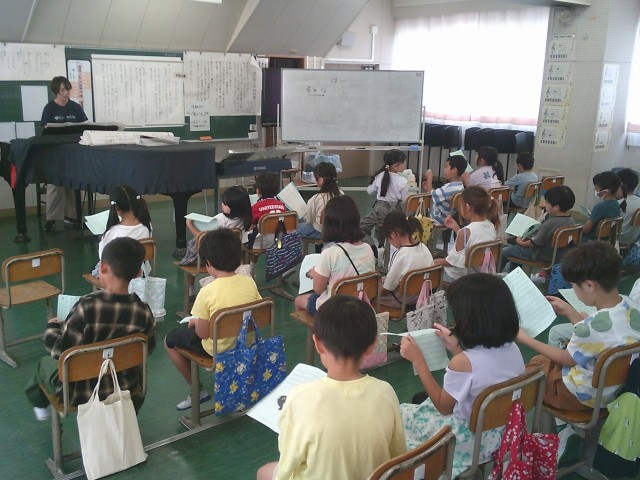 7日(火)3時間目、2年1組は音楽の時間でした。今月の歌「カントリー・ロード」の練習を最初にしました。その後、教科書にある「虫のこえ」を歌いました。最後に「スイミー」の歌の練習をしました。