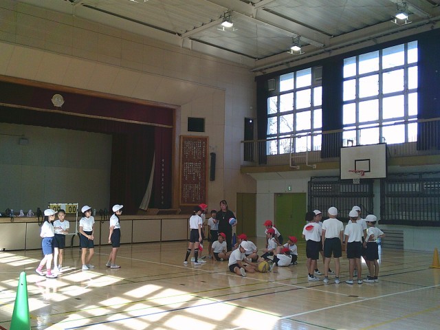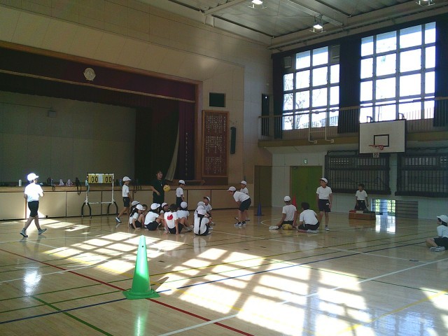 8日(水)1時間目、4年2組は体育の時間でした。ボール運動の「ポートボール」が始まりました。準備運動をしてから、先生の話を聞きました。どのような運動なのか、子どもたちの中からボランティアを募り、その動きを見ながら興味をもちました。