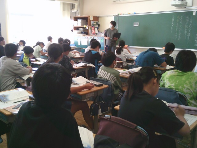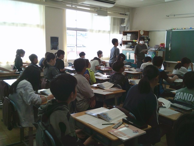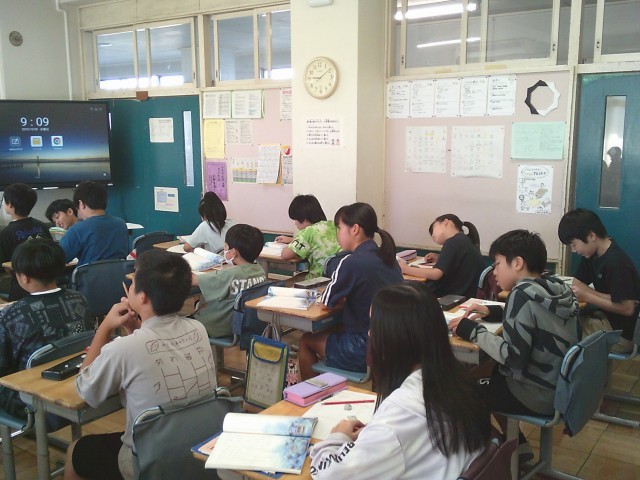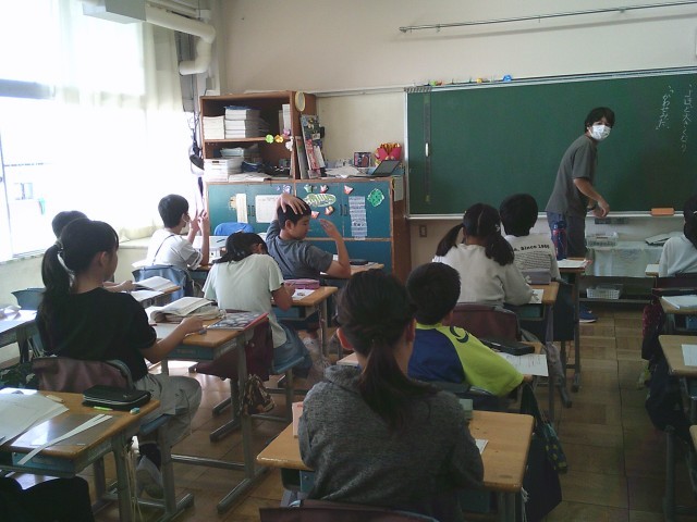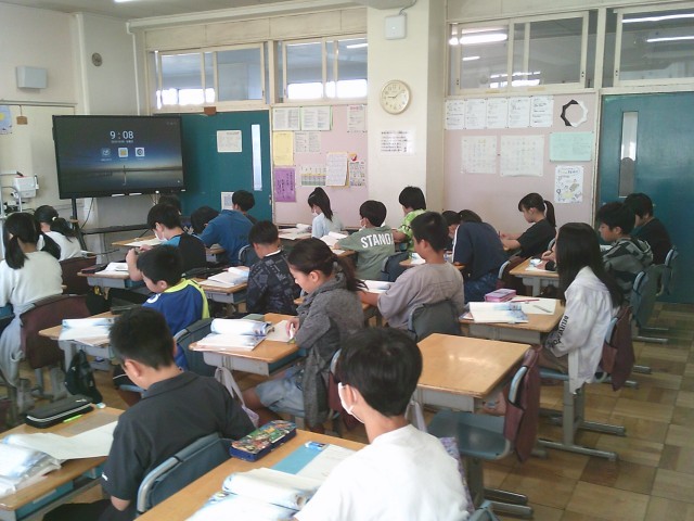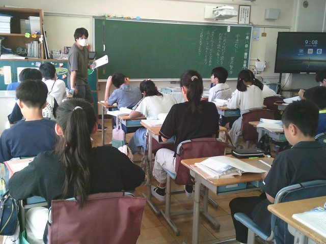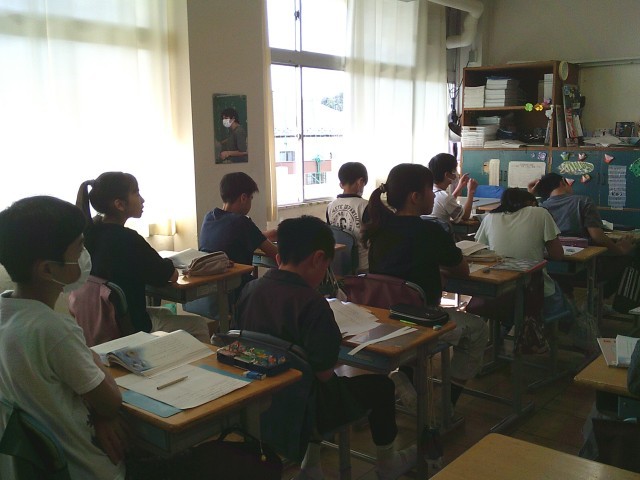 8日(水)1時間目、6年1組は国語の時間でした。宮沢賢治作「やまなし」を読んでいます。今回は12月の幻灯を読み、5月の時と比べて、かにの兄弟が成長しているところを読み取りました。