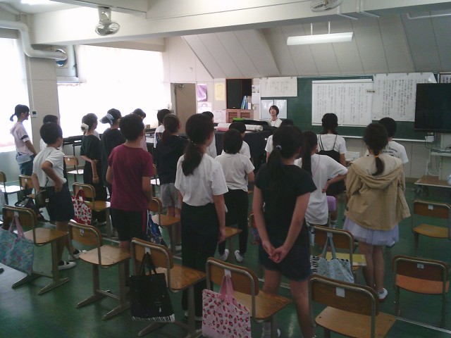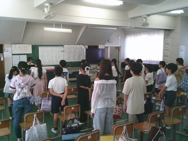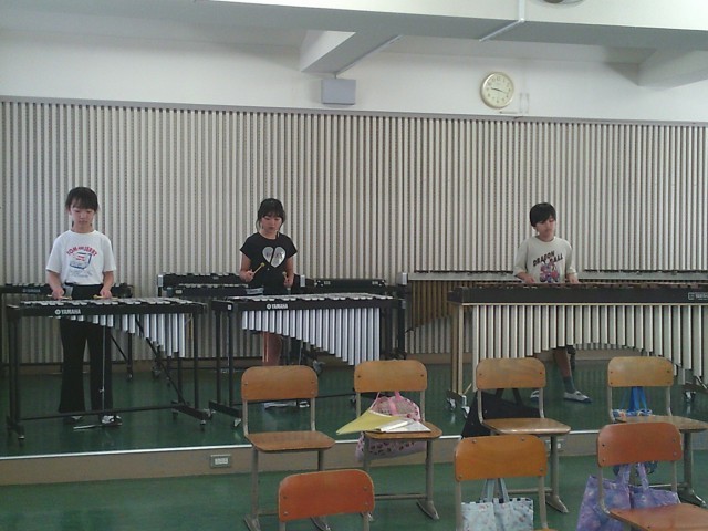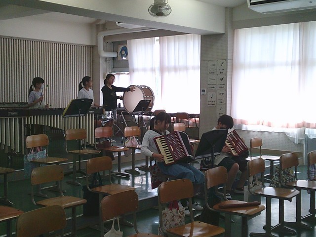 8日(水)1時間目、5年2組は音楽の時間でした。今月の歌「カントリー・ロード」を歌ってから、「トップ・オブ・ザ・ワールド」の合奏の練習をしました。持ち運べる楽器のグループは家庭科室に移動して楽器ごとに練習をしました。音楽の先生は各楽器の練習状況を見て指導をしていました。最後に、「さようなら」の歌を歌って終わりました。