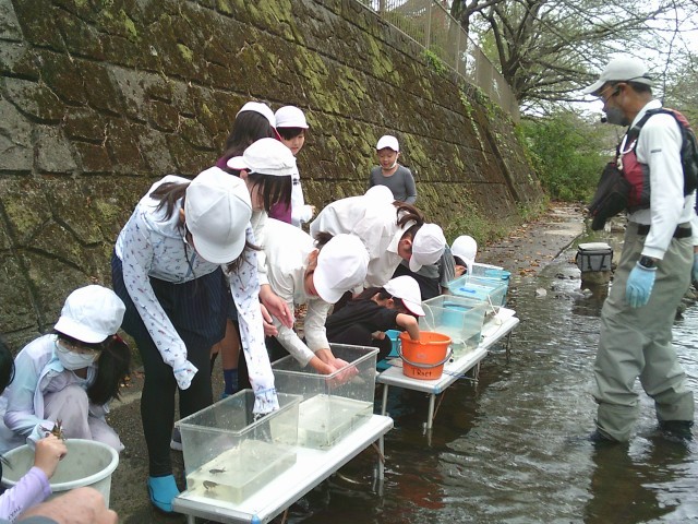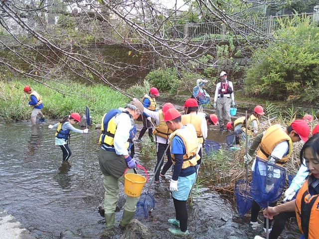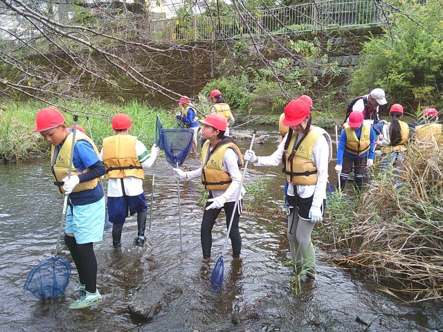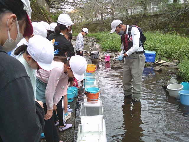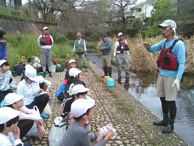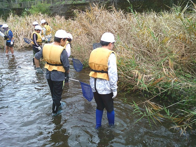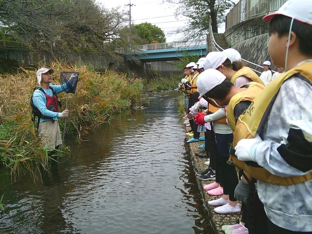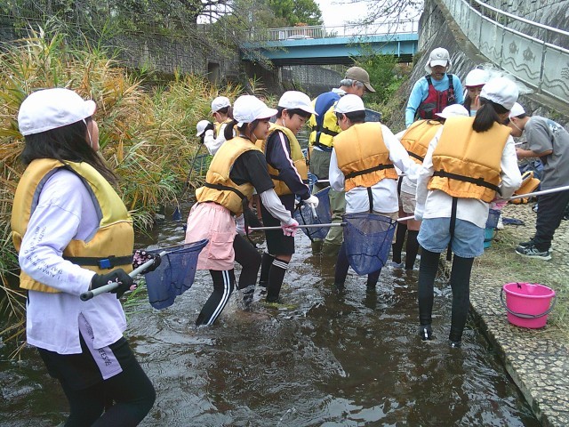 9日(木)5・6時間目、5年生は総合的な学習の時間に「恩田川フィールドワーク」をしました。ライフジャケットの数に制限があるため、1組、2組の順番で着用して恩田川の中に入りました。はじめは不安がっていた子どもたちも「ガサガサ」と網を動かして生き物を見付けると喜んでいました。講師としてお越しいただいた方々から恩田川に生息する他の生き物を紹介してもらったり、直接生き物に触れたりしました。9月に予定した学習でしたが暑さのために、今回の実施となりました。台風22号の心配もありましたが、風も収まって無事活動をすることができました。保護者の皆さまには活動に必要な物をご用意いただきありがとうございました。