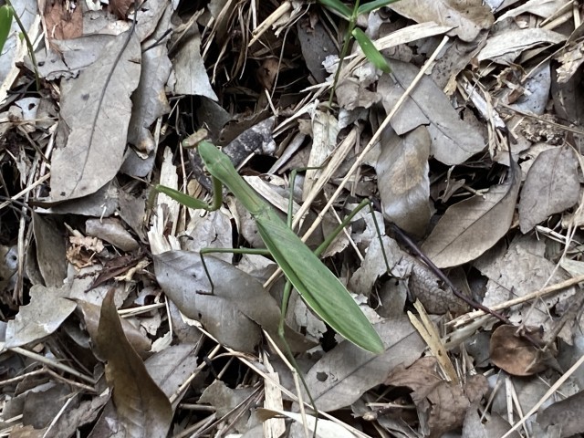 14日(火)「かしの木山自然公園」では、どんぐり以外にも写真のような虫や植物を観察しました。大きなカマキリやバッタに驚いたり、キンモクセイの香りを感じたりしました。