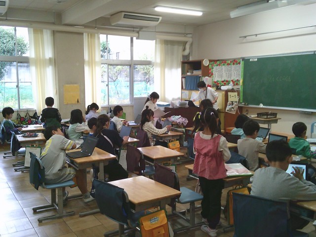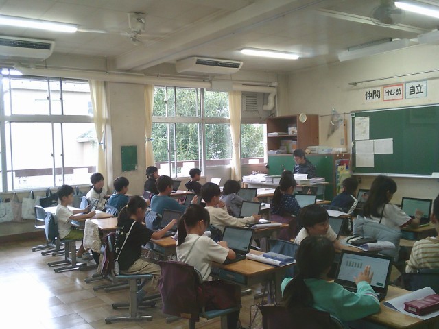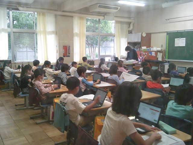 15日水曜日の朝(高ヶ坂タイム)は、タブレット端末を使ってドリルソフトに取り組んでいます。8時15分までに登校し、朝の支度(提出物を出す、連絡帳を書くなど)を終えるとタブレットを出して学習を始める姿があります。早めに登校しても友達とおしゃべりをしたり、のんびりしていたりして先に進まない人がいる一方で、時間ギリギリに登校してもササッと片付けて開始時刻に間に合わせられる人もいます。写真は1年1組から5年2組までの様子です。