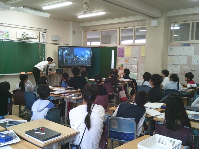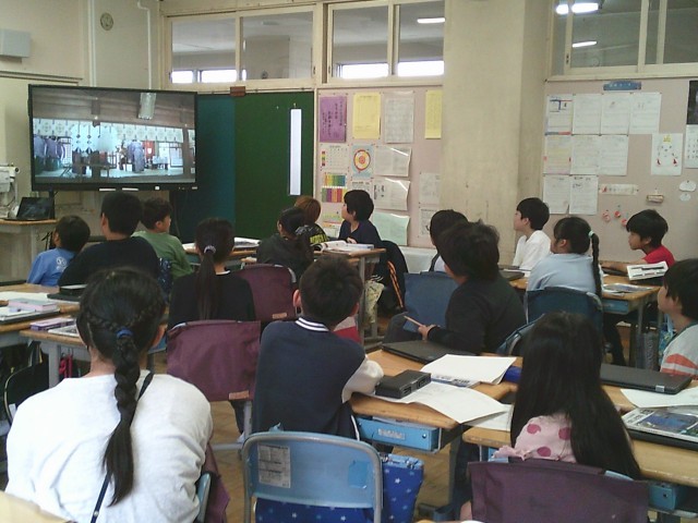 15日(水)1時間目、4年1組は社会の時間でした。「東京都に伝わる文化財」の単元から「府中市のくらやみ祭」を取り上げて学習しています。今回は、くらやみ祭はどのような祭なのかをめあてに動画を見て、気になったところや何をしているかを予想して話し合いました。