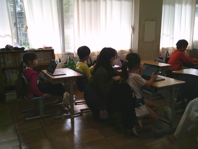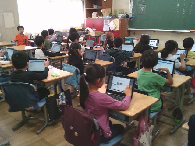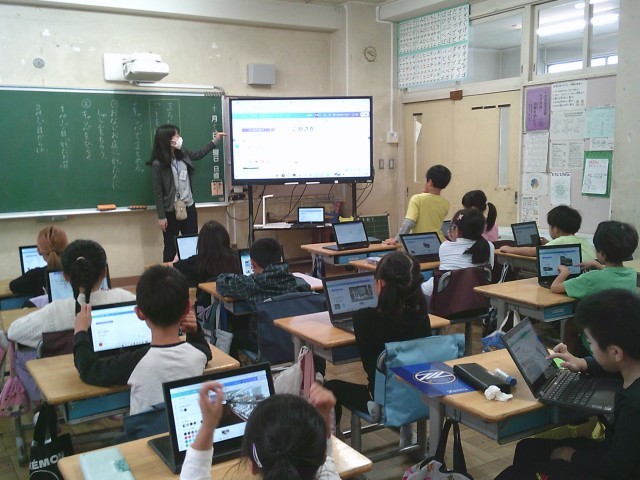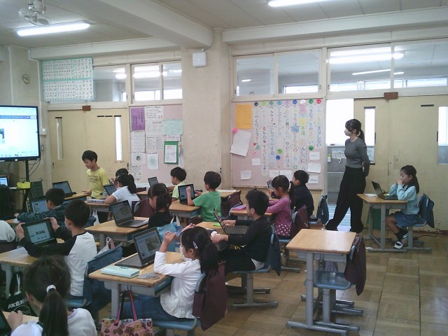 15日(水)3時間目、2年2組は生活の時間でした。今回はICT支援員の方から「CANVA(キャンバ)」を使った町探検のまとめ方を教えていただきました。子どもたちは、同じお店に行った人から写真をもらう作業を学びました。