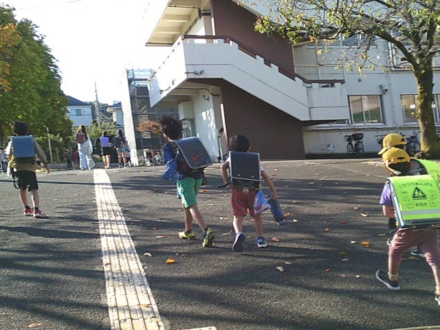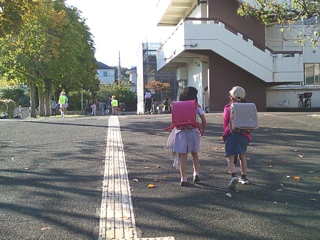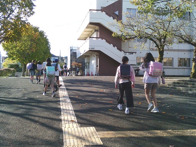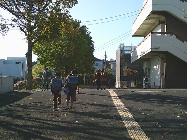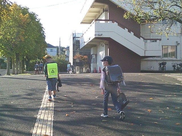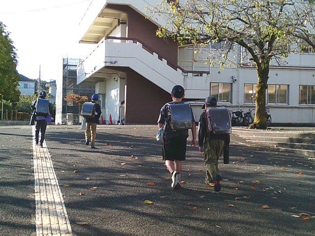 17日(金)、久しぶりに青空が広がりました。子どもたちは7時50分頃から上校庭に集まり始めます。8時になると朝の放送が流れるので、それを合図に昇降口に向かいます。それまで友達とおしゃべりをしたり、池を眺めたりして過ごしています。