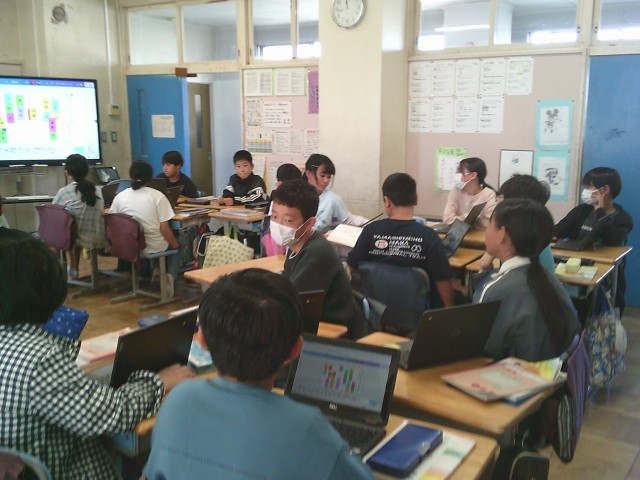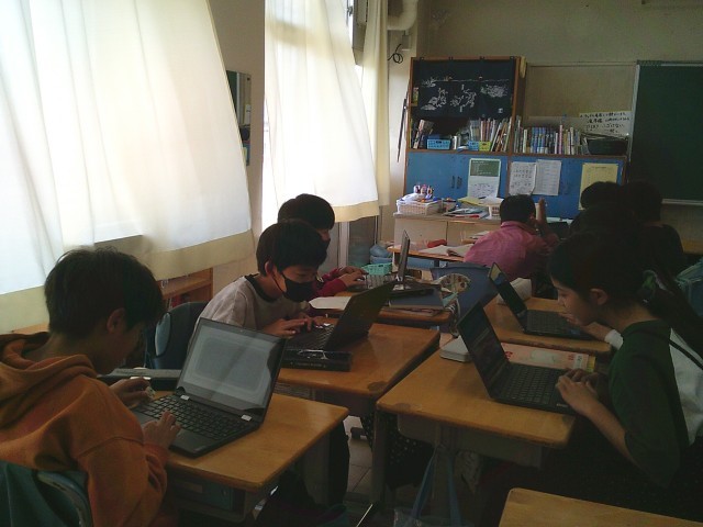 17日(金)4時間目、6年2組は国語の時間でした。熟語の成り立ちについての学習でした。二字熟語の成り立ちの復習をしてから、三字熟語のグループ分けをタブレットを使って行いました。その後、自分たちで三字熟語作りをしました。