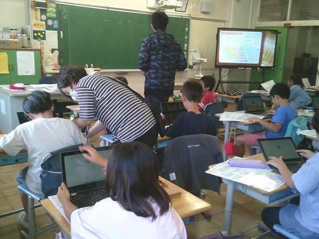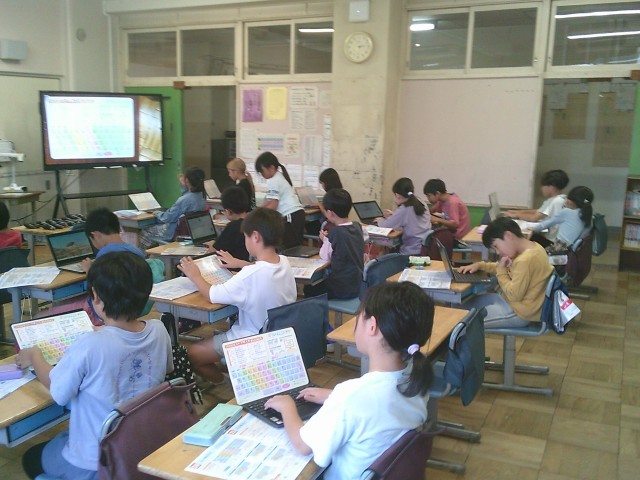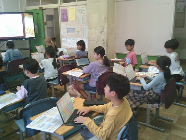 17日(金)6時間目、3年1組は国語の時間でした。ローマ字の学習は2組の先生としています。今回は、ローマ字入力の仕方を学びました。最初に、右手と左手のフォームポジションを確認しました。次に、各指を使って入力する練習を始めました。