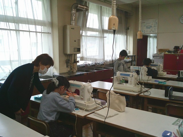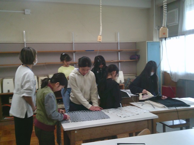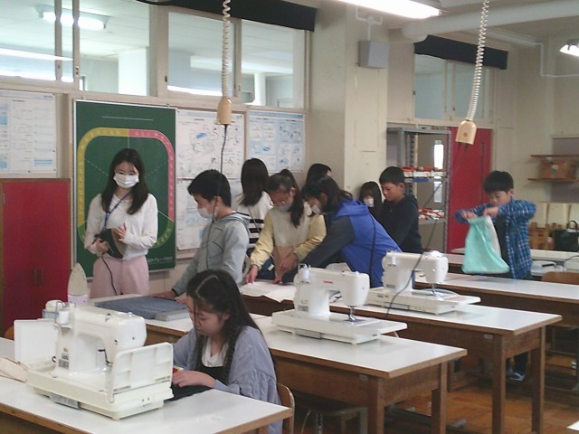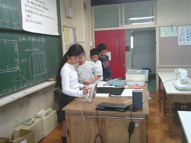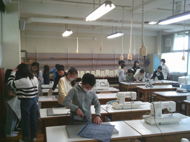 20日(月)1・2時間目、5年1組は家庭科の時間でした。「楽しくミシンでソーイング」の学習で、ランチョンマットを製作中です。今回は、ミシンで直線縫いをした縫い代をアイロンがけしました。子どもたちは火傷をしないように慎重にアイロンをかけていました。保護者や地域の皆さまに見守っていただき安全に操作ができています。ありがとうございます。