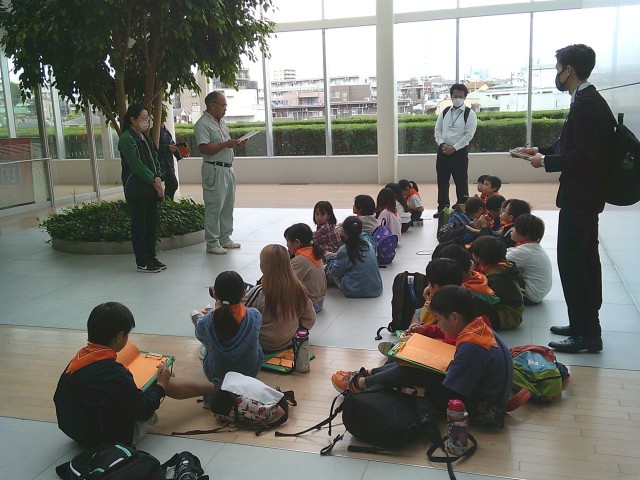 21日(火)午前9時半、町田市役所庁舎に到着しました。学年全体で挨拶をしたあと、学級ごとに庁舎内を案内していただきました。行程はそれぞれ違います。1組は教育委員会施設課の方、2組は教育委員会新たな学校づくり推進課の方が担当してくださいました。
