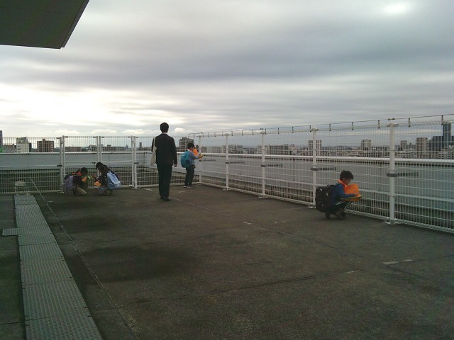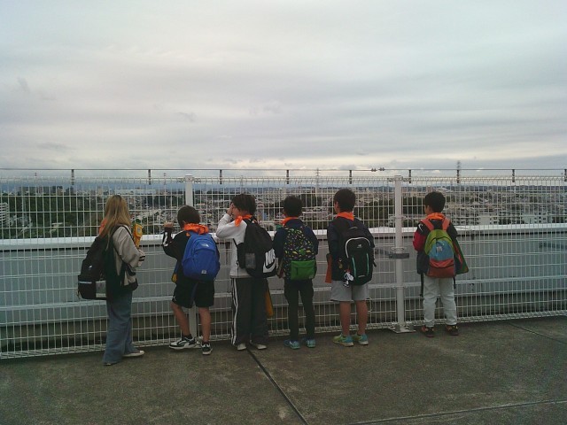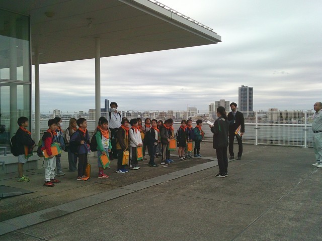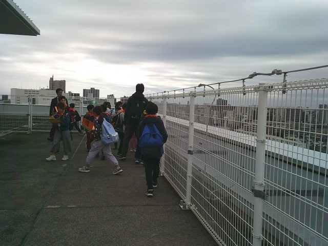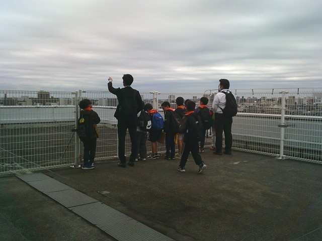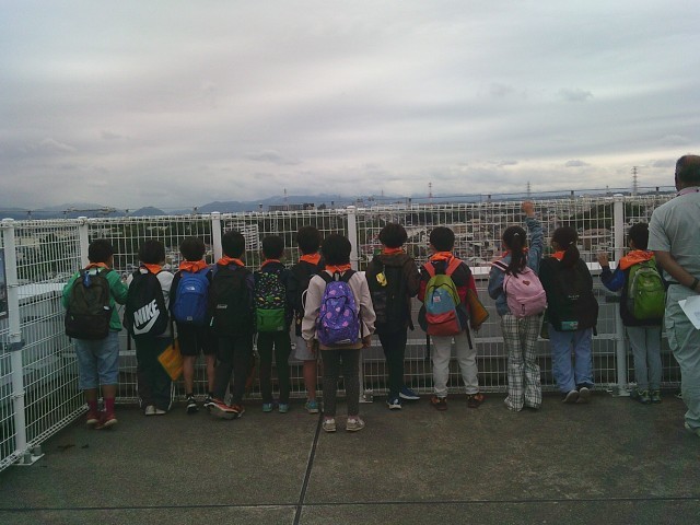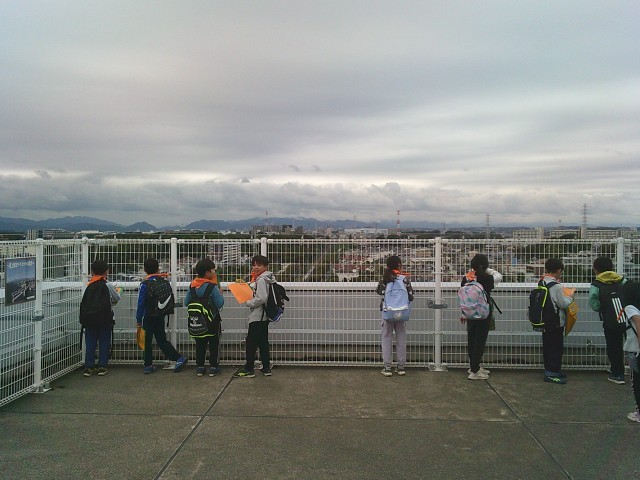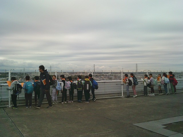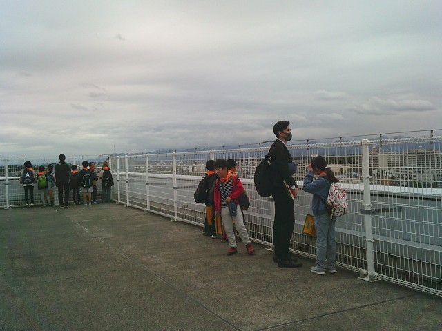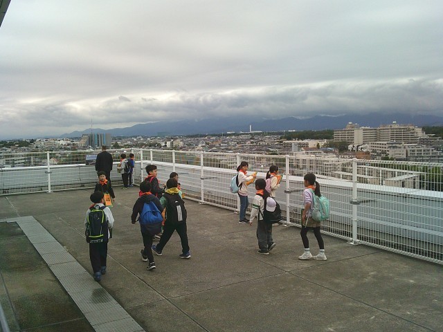 21日(火)3年生の社会科見学から、展望台での様子です。2組、1組の順番で見学しました。3階からエレベーターで10階まで行き、さらに階段を上って展望台に出ました。四方位を確認してから、各自で周囲を見学しました。町田市民病院、町田第四小学校、境川、横浜線、小田急線などが見えました。特に横浜線の電車が見えると「電車だー」と言って大喜びしていました。「高ヶ坂小は見えない」と分かると「残念」「見たかったな」と口にしていました。