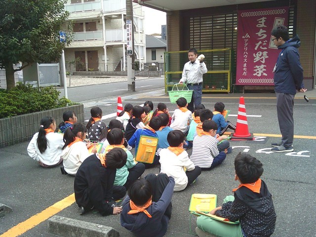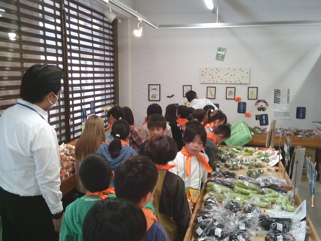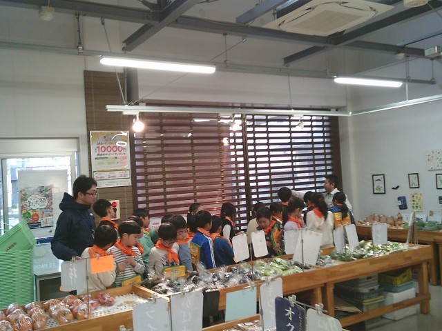 21日(火)午後1時から、「町田市の農業」についての学習が始まりました。1組、2組の順番で直売所の見学をしました。スーパーマーケットにはない「町田産」の野菜をいくつも紹介してもらいました。「鮮度の良さ」と「珍しい野菜がある」ことが魅力になっているとのことでした。先週伺った農家さんもこの直売所に野菜を卸していると分かり、子どもたちは写真を見たり、野菜のラベルを確認したりして嬉しそうでした。
