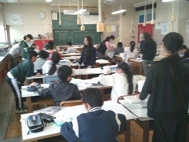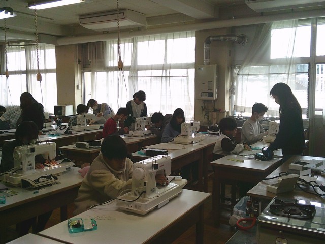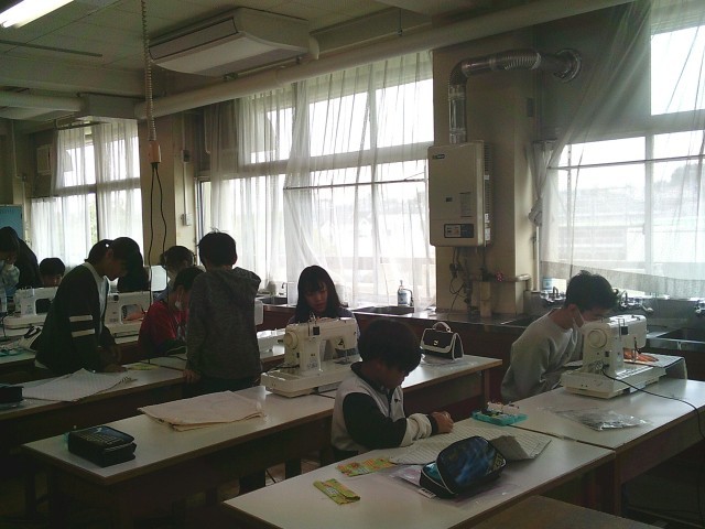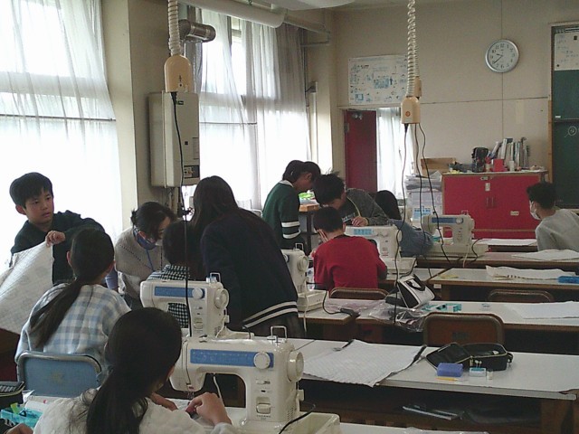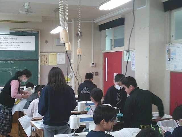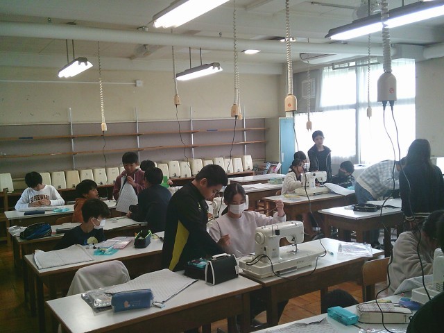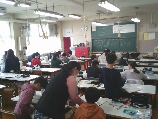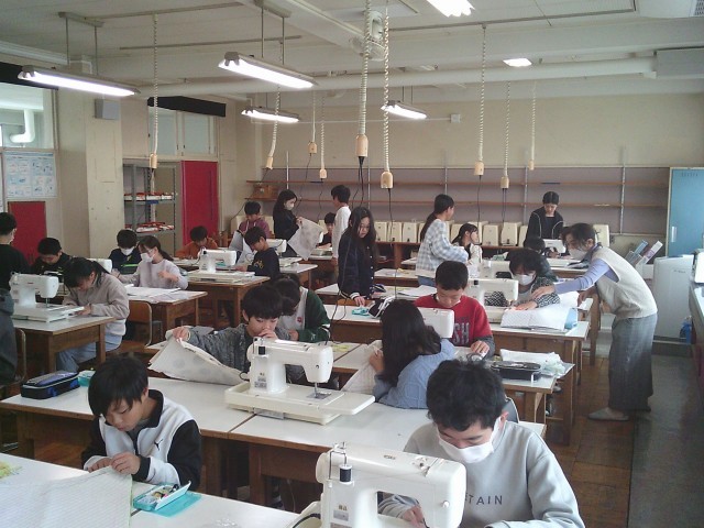 23日(木)1・2時間目、6年2組は家庭科の時間でした。「ソーイングで生活を豊かに」の学習で、ミシンを使ったナップザック製作に取り組んでいます。今回も保護者の皆さまのご協力をいただきました。本日もありがとうございました。