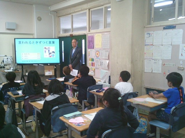 23日(木)3時間目、4年1組は人権教室に参加しました。3人の人権擁護員の方が、交代で講師を務めました。子どもたちは、「言われていやなことは言わない」「されていやなことはしない」も再確認しました。
