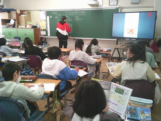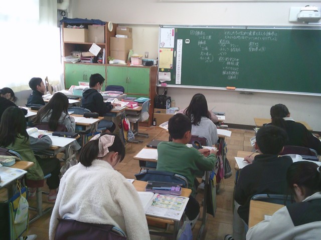 23日(木)3時間目、5年1組は社会の時間でした。「自動車をつくる工業」の学習です。今回は、自動車はどのような地域で作られているのかをめあてに取り組みました。子どもたちは、先生から示された3つの資料を見ながら、自分の考えを書いていました。