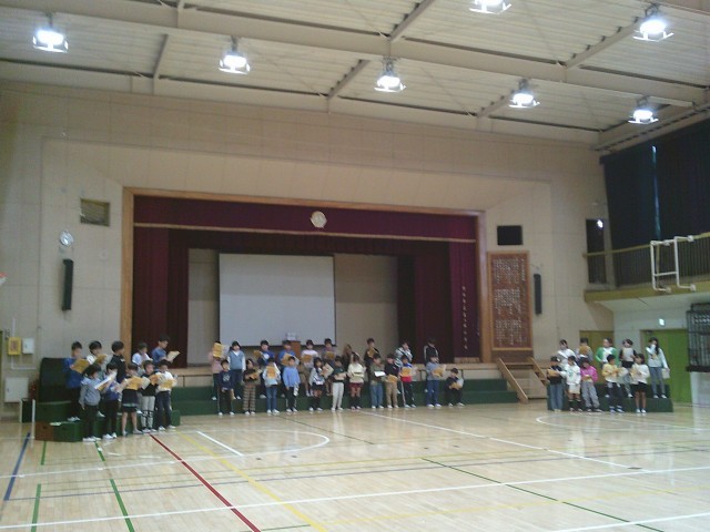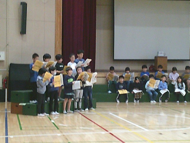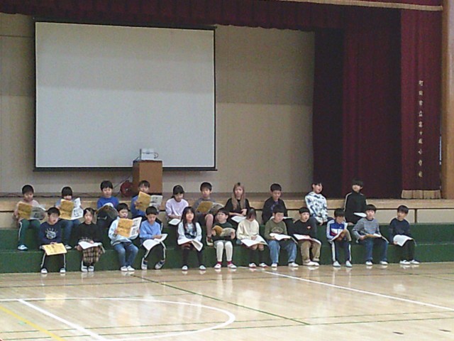 27日(月)1時間目、3年生は学習発表会の練習時間でした。3年生は国語の教科書に出てくる「三年とうげ」に取り組みます。一人だけの台詞、グループ全員での台詞などに分かれています。台本を見ながらの練習ですが、中には見ないでも自分の台詞を言える人が出てきました。