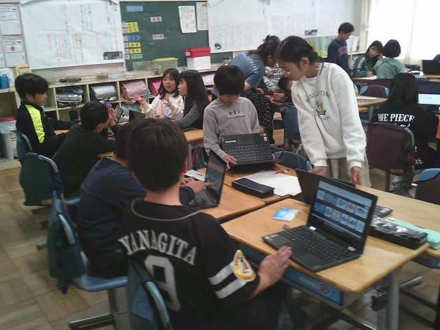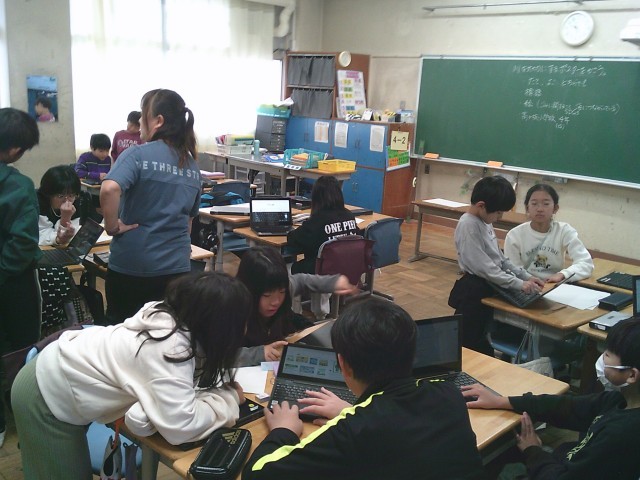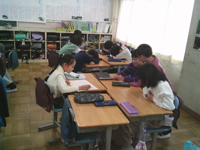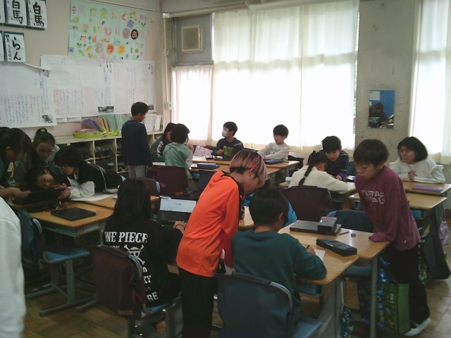 27日(月)1時間目、4年2組は総合的な学習の時間でした。24日(金)の午後、2クラス合同で恩田川沿いを歩き、川の状態を調べてきました。きれいだと思っていた恩田川にもごみが流されていることが分かった子どもたちは、自分たちにできることは何かを考え、ポスターを描くことにしました。