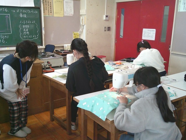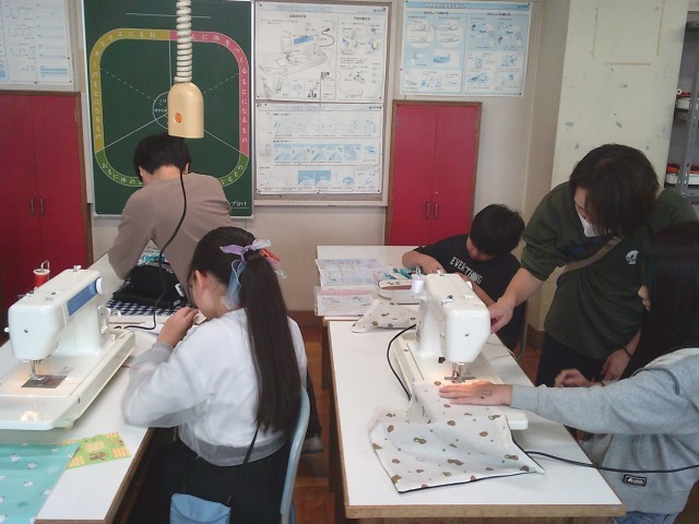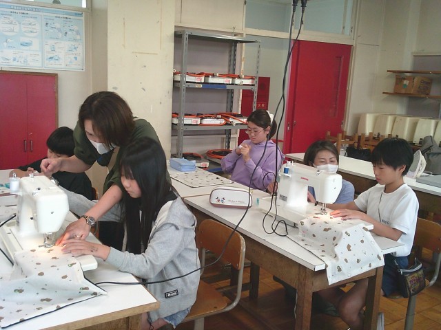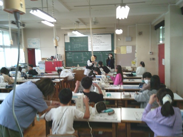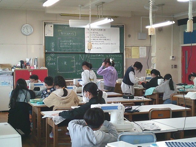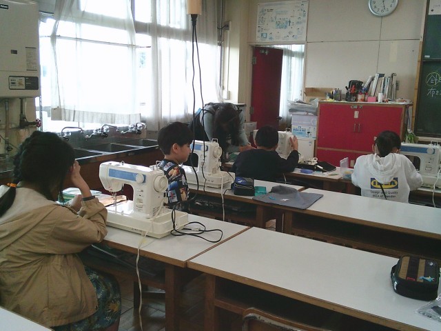 27日(月)3・4時間目、5年2組は家庭科の時間でした。「ミシンで楽しくソーイング」の学習としてランチョンマットを製作しています。毎回出席していた人はほぼ完成に近付いてきました。布を表に返して端から1cm位のところを縫えばゴールは目前です。最後に、アイロンワッペンを付けたり、自分のイニシャルを縫ったりしていました。2組にもたくさんのボランティアの方が入ってくださいました。1組の授業から連続してお手伝いしてくださっている方もいらっしゃいます。感謝の言葉しかありません。ありがとうございます。