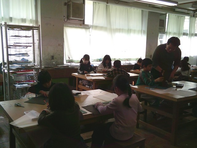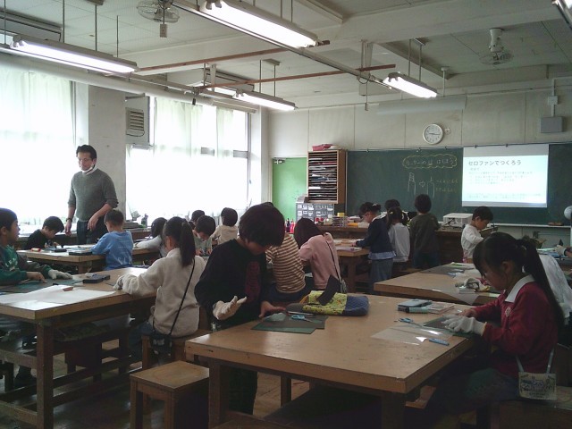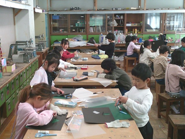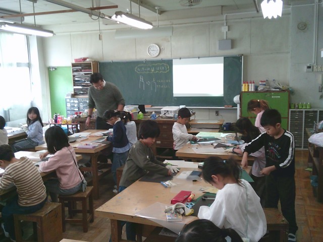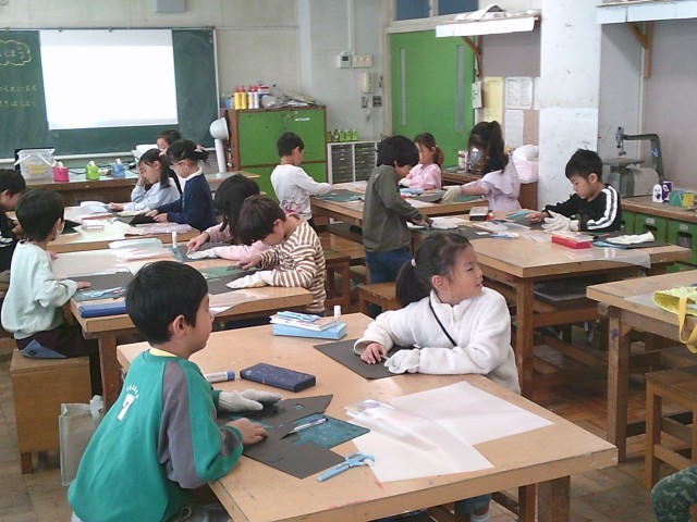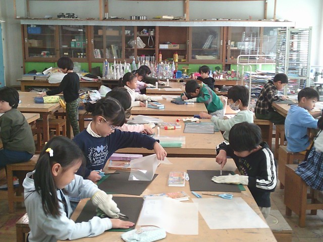 29日(水)1・2時間目、2年1組は図画工作の時間でした。「セロファンでつくろう」の学習です。黒画用紙にカッターやはさみで窓をつけることから始まり、その窓にセロファンを貼りました。その後、マジックを使ってセロファンに絵を描きました。円い窓から三日月が見えたり、三角の窓から星が見えたりするなど子どもたちは楽しそうに取り組んでいました。