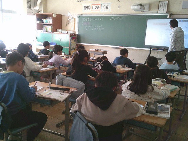 30日(木)3時間目、3年2組は社会の時間でした。農家見学から学んだ、野菜を育てるときの工夫をまとめました。その中で「マルチシート」の役割を確認しました。子どもたちは「雑草を生えさせない」、「土を乾燥させない」などノートにまとめていました。