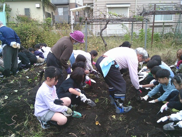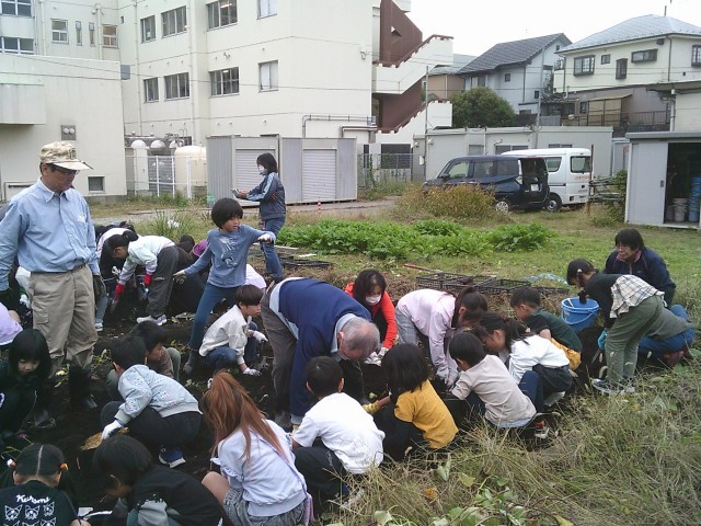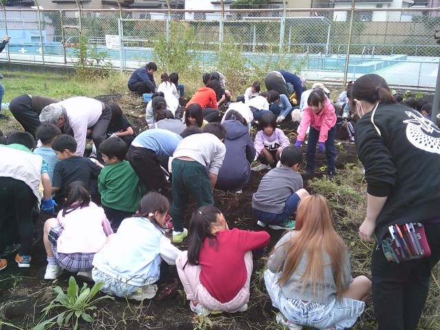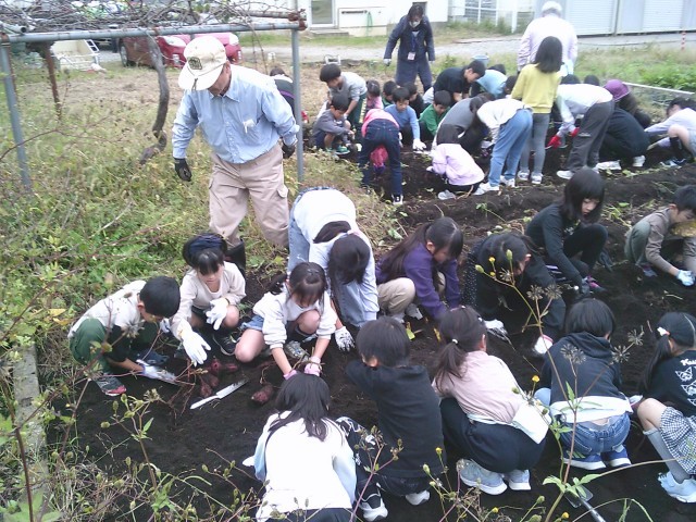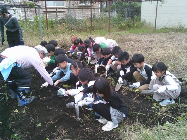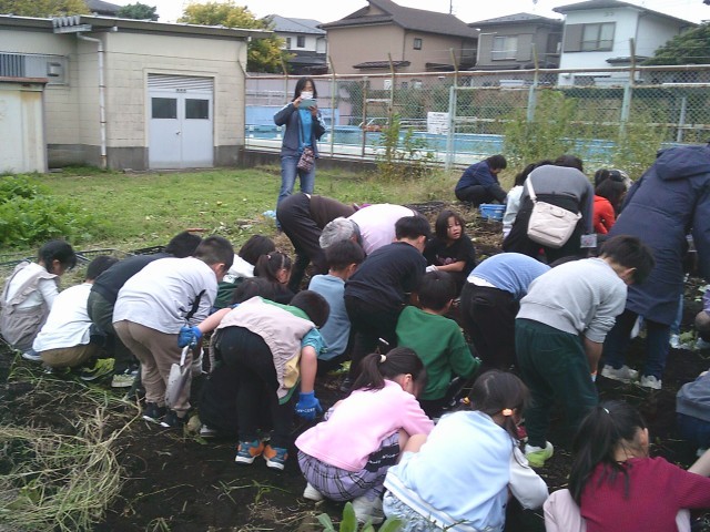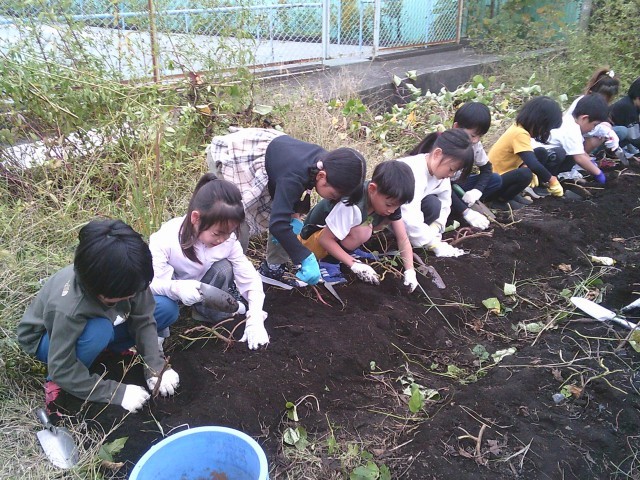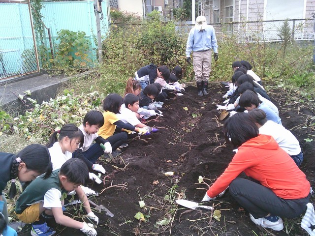 31日(金)5時間目、2年生は生活の時間でした。5月に植えたサツマイモの収穫をしました。今回も南第三高齢者支援センターの皆さまにご協力いただきました。これまでも夏の時期の雑草抜きをしてくださっていました。一人1本ずつスコップを手にして、慎重に土を掘っていきました。あちらこちらから「あった」「大きい」と子どもたちの歓声が上がりました。収穫後、お世話になった皆さんにお礼の挨拶をしてから教室に戻りました。サツマイモは教室に広げた新聞紙に並べました。