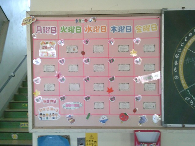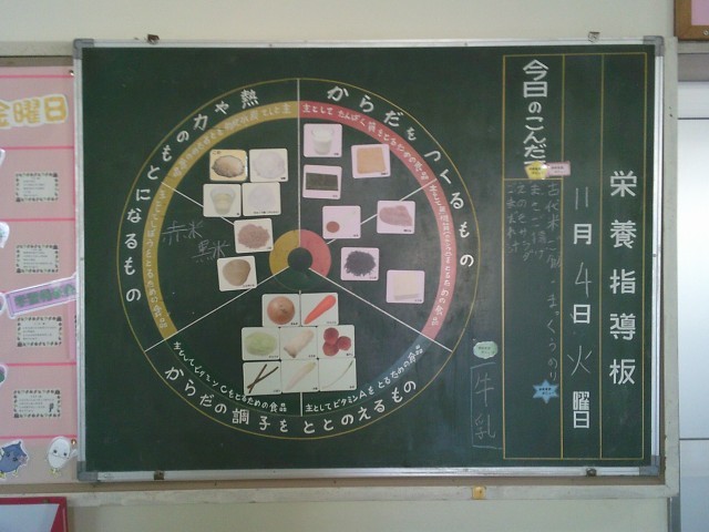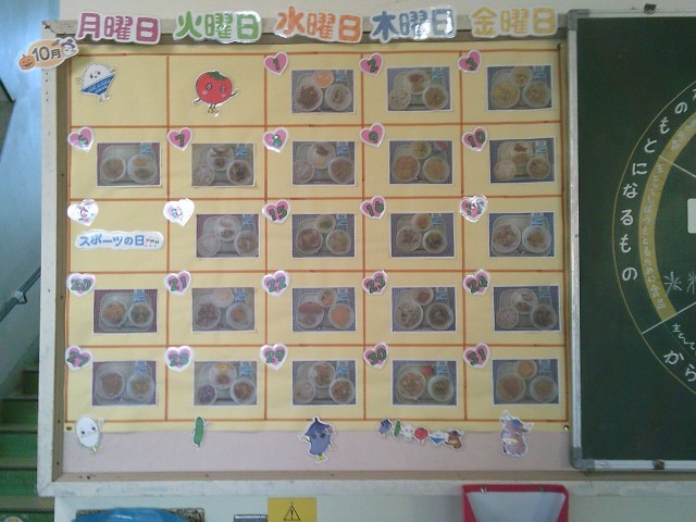 1階給食室前の「給食カレンダー」が11月用になりました。今月もおいしい給食の提供に努めていきます。3枚目の写真は10月のカレンダーです。栄養教諭が毎回撮った写真で埋め尽くされています。