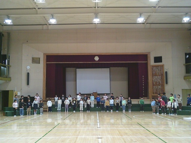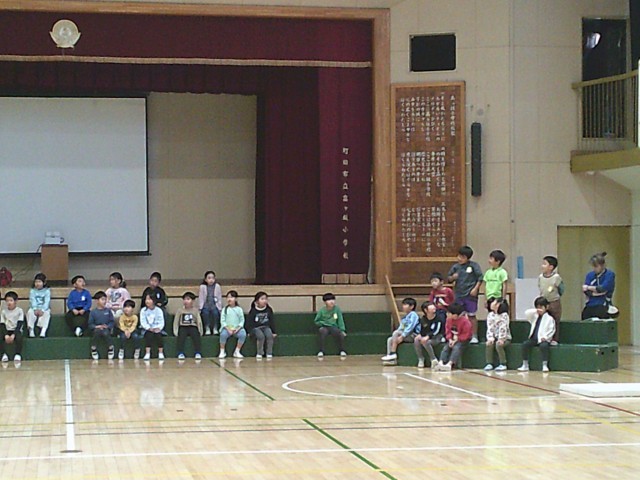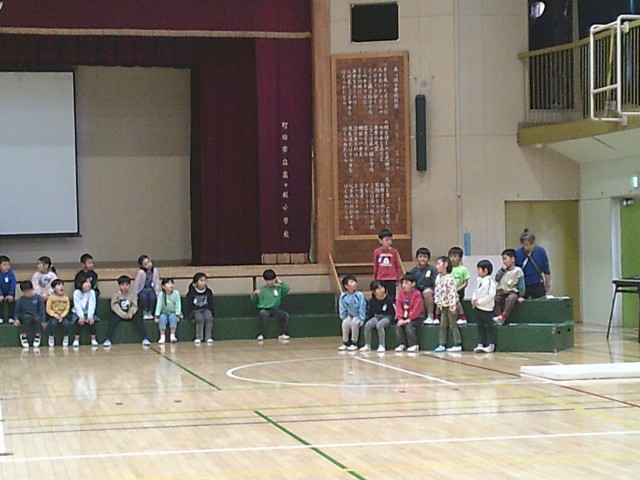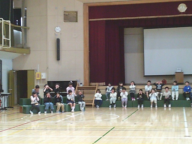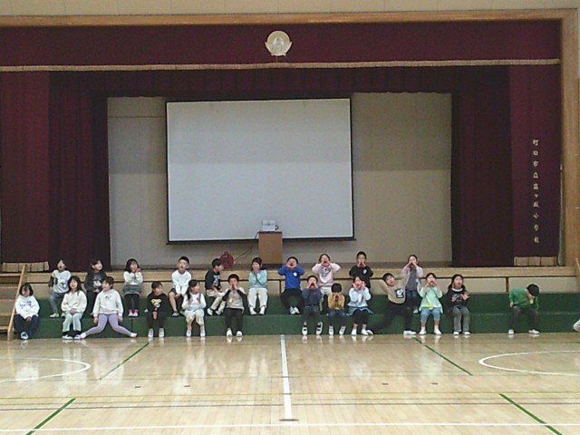 4日(火)5時間目、1年生は学習発表会の練習をしました。「くじらぐも」の台本を持たないで行っていました。せりふだけでなく、歌も歌いました。子どもたちは歌も元気よく歌っていました。