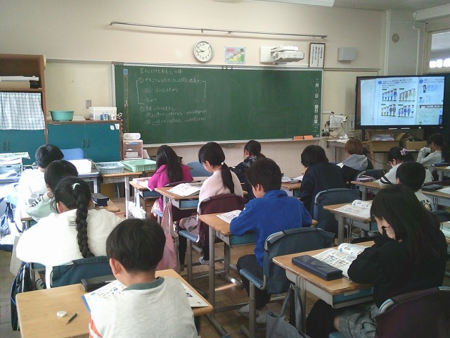 5日(水)1時間目、4年1組は保健の時間でした。「変化してきたわたしの体」の学習です。同じ学年の友達でも、成長の仕方は同じではないことをグラフから読み取りました。今後、二次性徴について学習していきます。