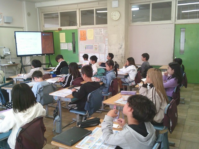 5日(水)2時間目、3年1組は国語の時間でした。ローマ字の学習は2組の先生としています。今回は、「つまる音」や「を」、カギ括弧の入力の仕方を学習しました。