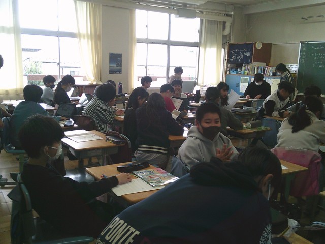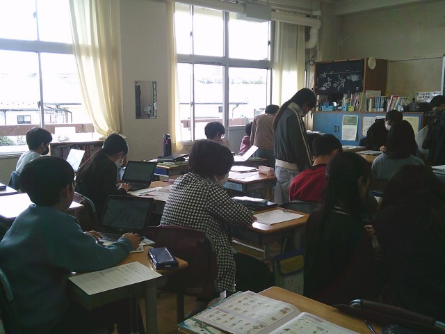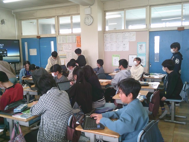 6日(木)4時間目、6年2組は外国語の時間でした。「レッスンのまとめとして、スピーチの準備をしよう」が今回のめあてでした。時間とともに変化したものを一つ取り上げて、英文を考えていました。一人ずつ先生にチェックしてもらいながら、明日、スピーチをすることになりました。