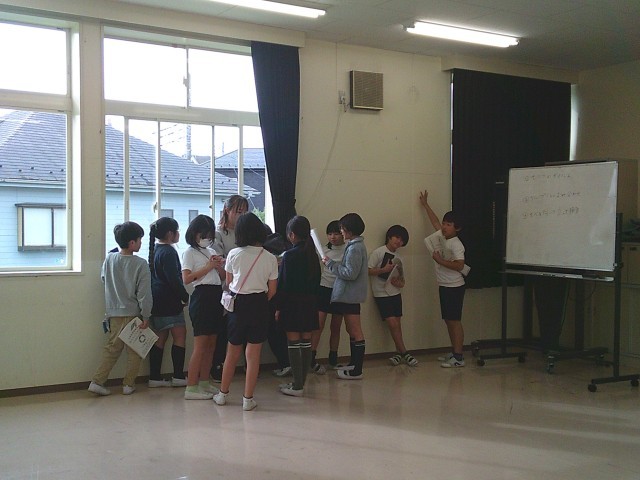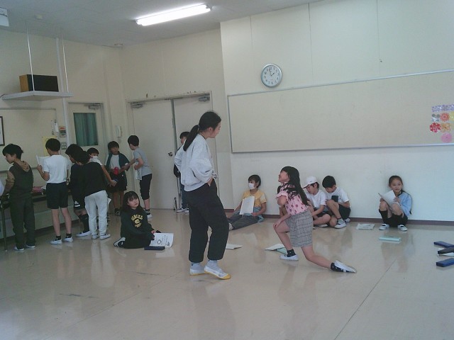 6日(木)5時間目、4年生は視聴覚室で学習発表会の練習をしました。場面ごとに分かれて、せりふの練習をしたり、動きを相談したりしていました。