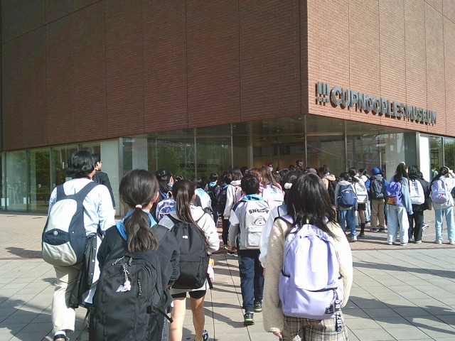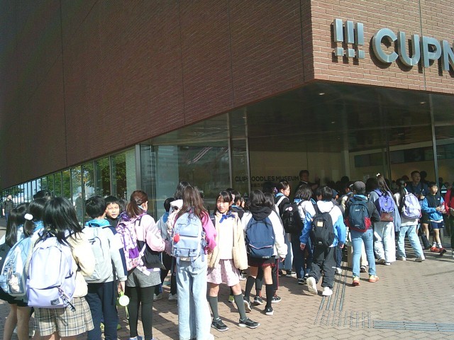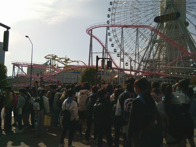 7日(金)午後1時過ぎ、ミュージアムを背にして学級ごとに集合写真を撮りました。その後、信号を渡って建物の中へと向かいました。信号近くに観覧車をはじめとする乗り物が見えて、子どもたちは「乗りたいな」と呟いていました。