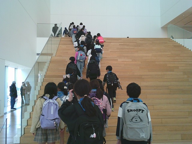 7日(金)午後1時20分から「カップヌードルミュージアム」での体験と見学が始まりました。本校では初めて訪れた場所ですが、人気のミュージアムとあって多くの方が来ていました。子どもたちは入場券と資料を受け取り、大階段を上って体験前の説明を聞きました。見学先では階段を利用したり、床に座ったりすることがあり、そんなときに「けがの予防」、また、「周囲の目から子どもを守る」ために長ズボン着用だと安心です。