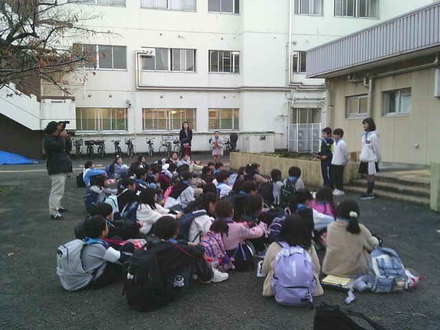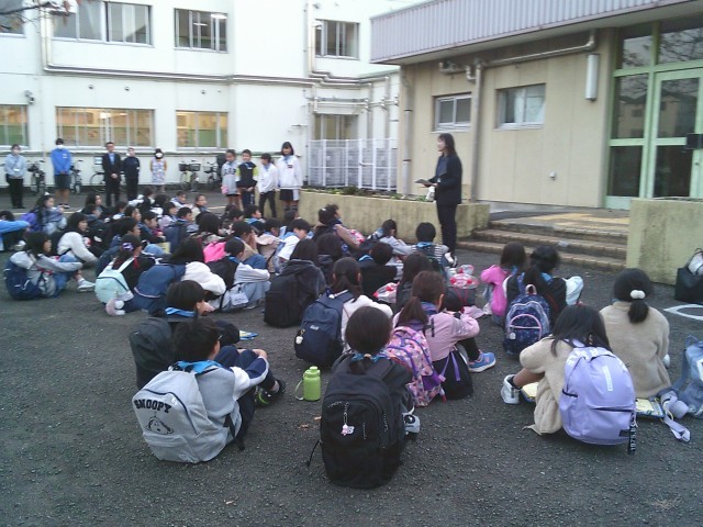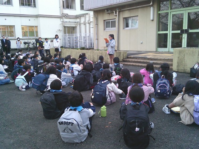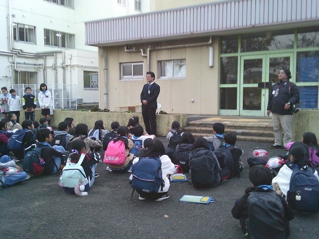 7日(金)午後4時15分、5年生は学校へと帰ってきました。体育館前で帰校式をしました。司会進行と代表の言葉は2組が担当しました。ミーティングを終えた先生方が「おかえりなさい」と出迎えてくれました。最後に学年の先生から、「来週月曜日に洗濯してアイロンがけをしたバンダナ、社会科見学のしおり、いただいた資料を持ってくる。」という連絡がありました。社会科見学を通して、子どもたちは深く学ぶことができました。保護者の皆さまのご理解、ご協力のおかげと心より感謝申し上げます。