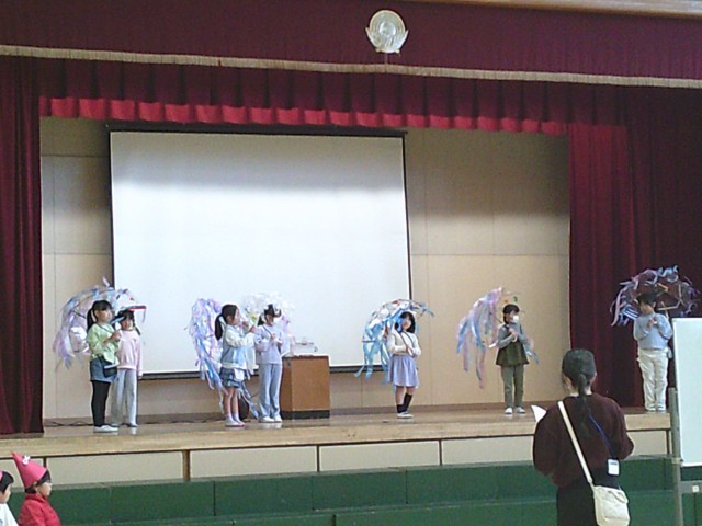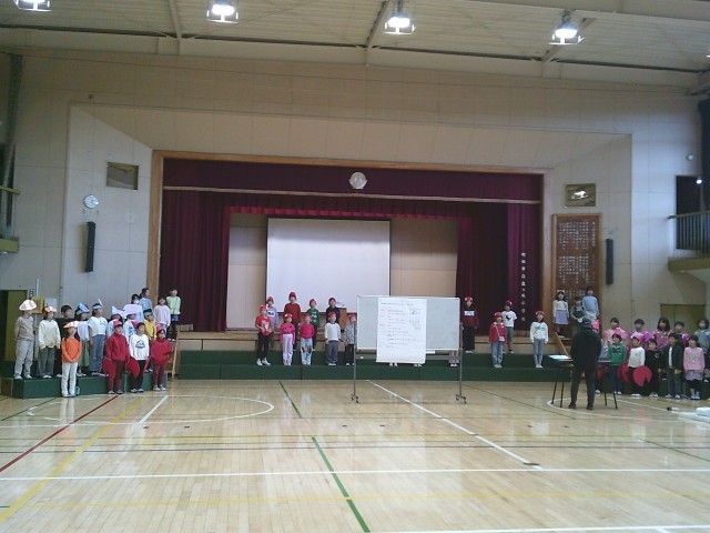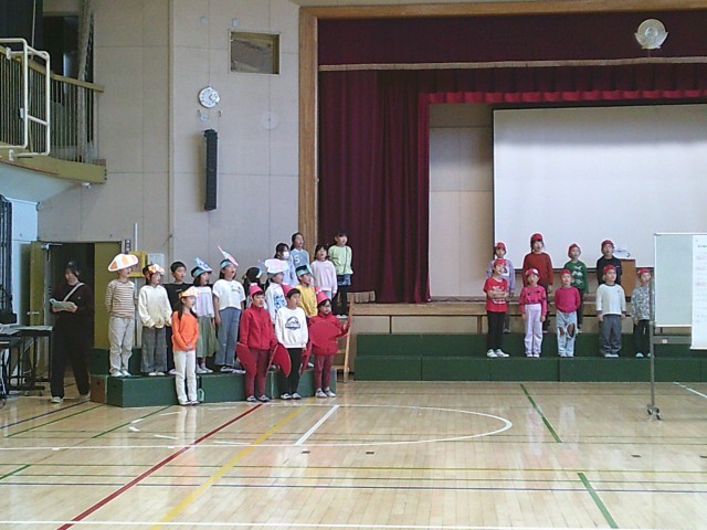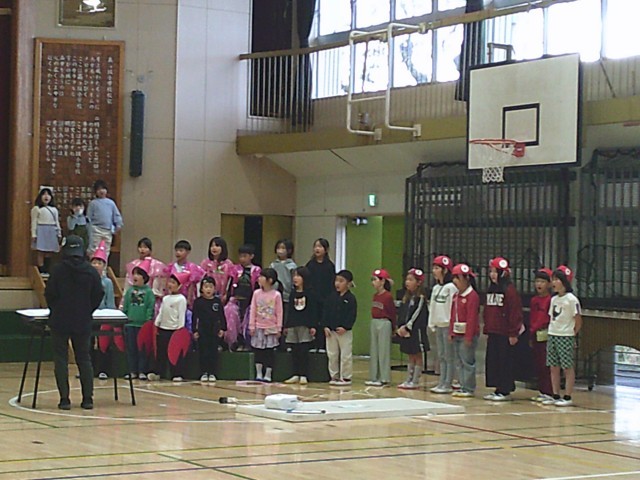 10日(月)5時間目、2年生は学習発表会の練習をしました。被り物や小道具の他に、衣装を着けて練習をしました。より本番を意識した出で立ちに子どもたちも張り切っていました。