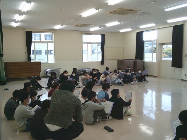 10日(月)5時間目、6年生は視聴覚室で学習発表会の練習をしました。先生の話を聞いてから、場面ごとに分かれてせりふの練習をしました。6年生は明日から2日間、学年閉鎖をします。健康を取り戻してこそ先へ進めますから、拡散しないようにと願っています。