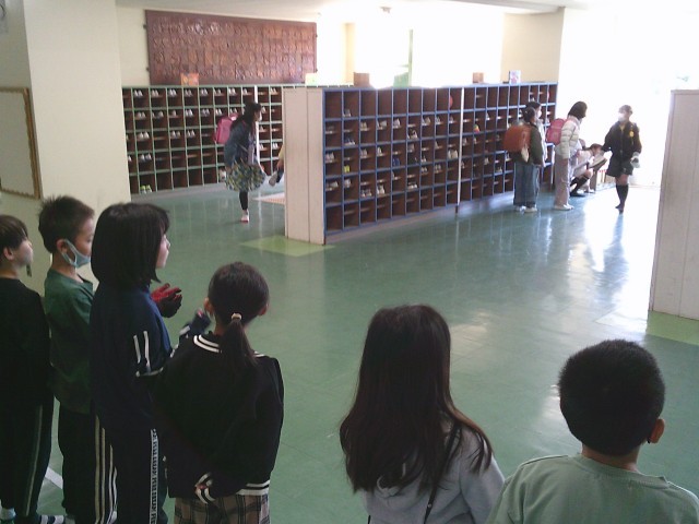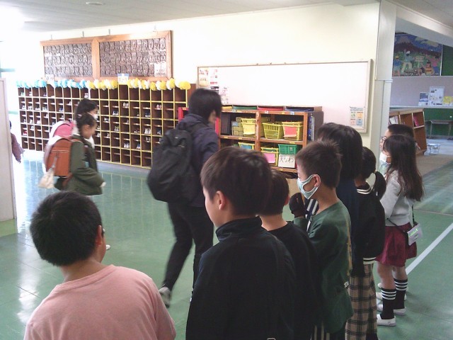 12日(水)、あいさつ運動の担当は3年1組でした。この日を楽しみにしていたようで、昇降口で靴を履き替えながら「大きな声で挨拶しようね。」と声をかけ合う姿がありました。1階と2階とに分かれて元気よく挨拶をしていました。