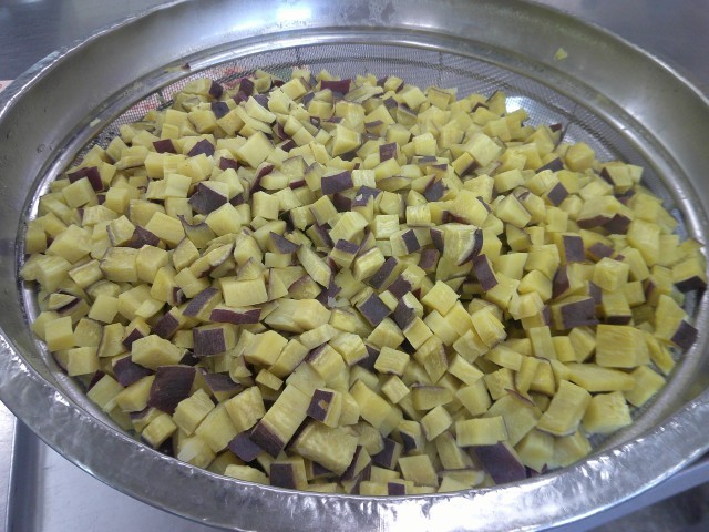 今日の献立は、秋の香りご飯です。秋が旬であるさつま芋、しめじを使っています。さつま芋はとてもきれいな黄色をしており、とても甘く、大好評でした。しめじが苦手な児童もいますが、今日のようなまぜご飯にすると食べられるという子もおり、よく食べていました。