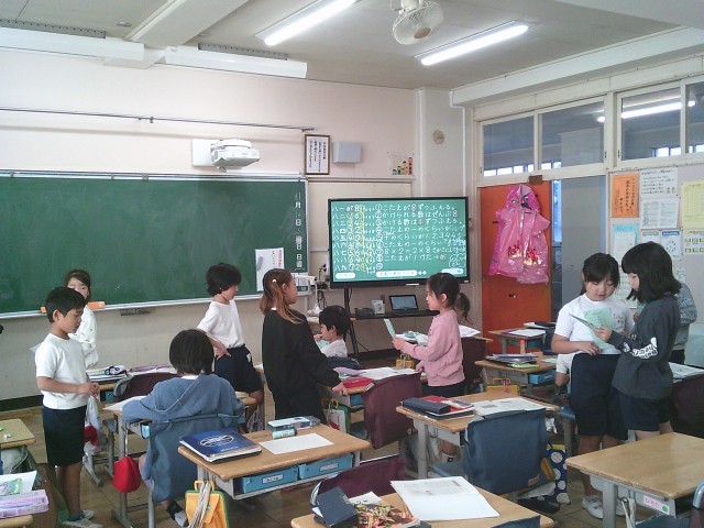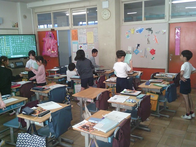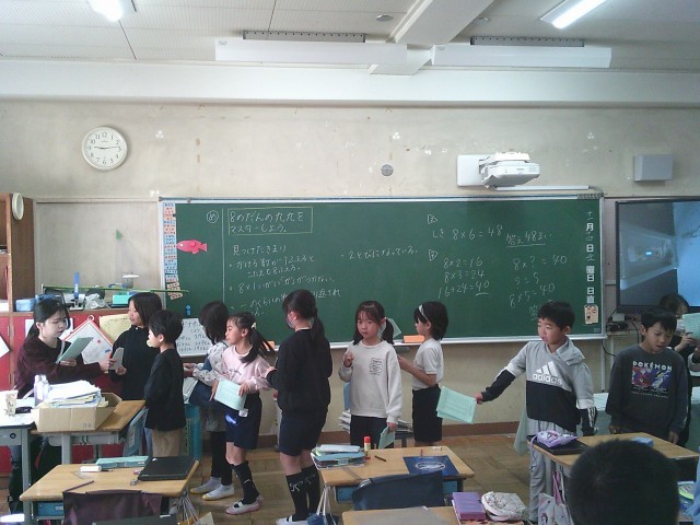 14日(金)1時間目、2年生は算数の時間でした。「かけ算」の学習です。授業の後半は、「かけ算九九」の検定をしました。一人で九九の練習をする人、友達に検定してもらう人、先生に検定してもらう人の姿がありました。今回は、副校長先生も検定に参加しました。