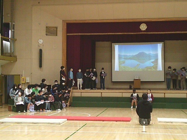 14日(金)1・2時間目、6年生は学習発表会の練習をしました。前半はグループごとにせりふや動きの確認をしました。後半は通し練習をしながら、移動のタイミングをつかみました。最後は歌を歌って終わります。