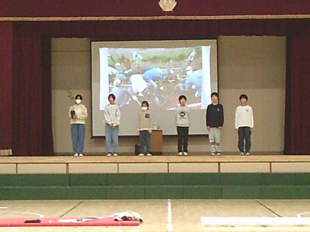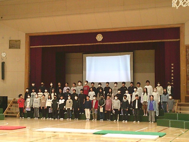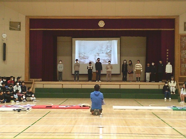18日(火)5・6時間目、6年生は学習発表会の練習をしました。5時間目は、音楽の先生も加わり、エンディングで披露する合唱の練習をしました。6時間目は入場から始め、通し練習をしました。前日とは違った演出があり、子どもたちが考えて付け加えたと聞きました。時間は限られていますが、その中で精一杯のことをしようとしている姿は本当に立派です。