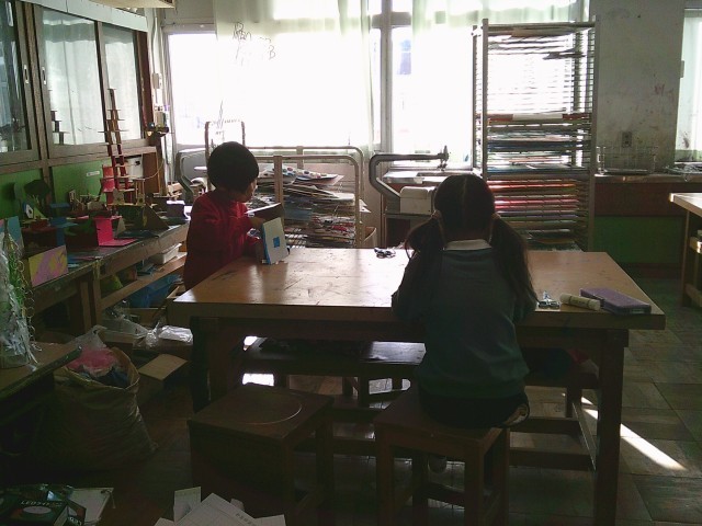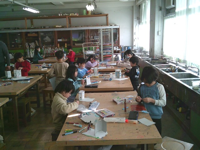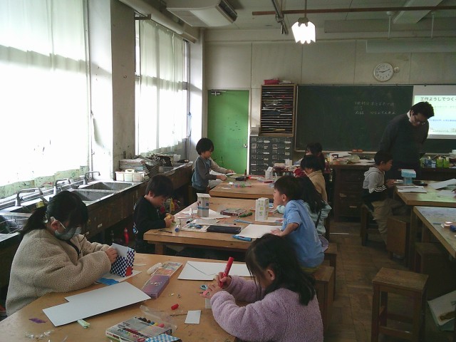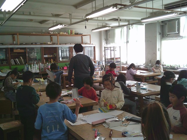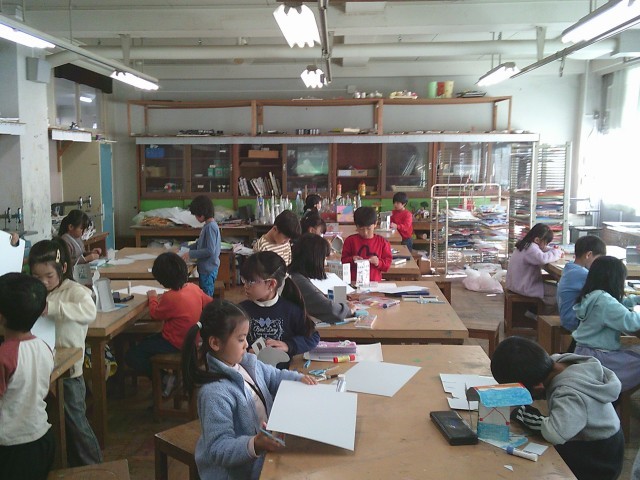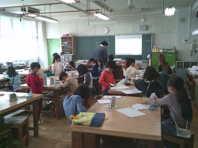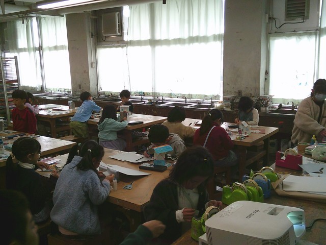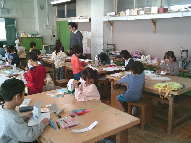 19日(水)1・2時間目、2年1組は図画工作の時間でした。「工作用紙でつくろう」の学習です。工作用紙を使って、すてきな家をつくることがめあてです。最初に家づくりから始まりました。次に、住んでいる人や家にある物を考えながら、家の中に加えていきました。