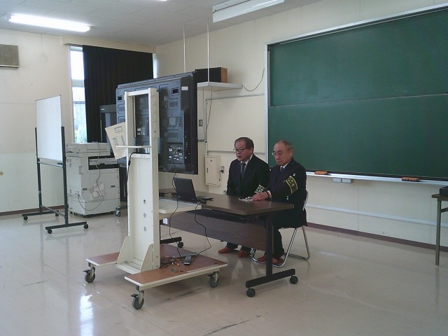 19日(水)午前10時から避難訓練をしました。今回は、不審者対応訓練です。子どもたちは緊急放送を聞くと、先生の指示に従って教室にろう城する準備をしました。本校では不審者が侵入した際、隠語を用いて校内放送をします。町田警察署生活安全課のスクールサポーターのお二人にお越しいただき、避難の様子をご覧いただき、さらにオンラインで講評をしていただきました。「不審者侵入が分かったら、すぐに教室の電気を消す、静かにろう城の準備をすること。とにかく人気のないようにすることが大事」とお話をいただきました。子どもたちは画面越しに静かに話を聞いていました。