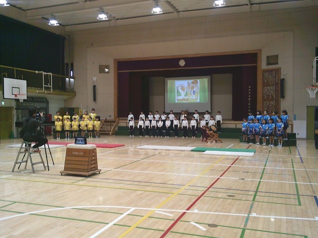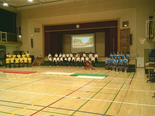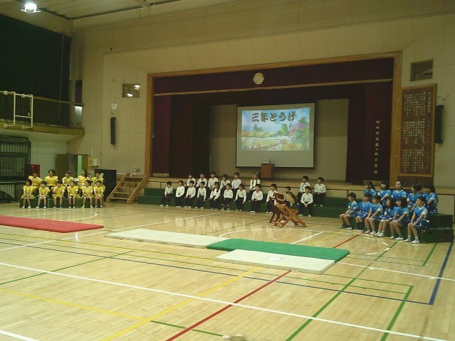 20日(木)学習発表会前日のため、全学年リハーサルをしました。5番目は3年生の登場です。国語の教科書にある「三年とうげ」の音読劇を発表します。個人の言葉に加え、役ごとにそろって音読する姿は圧巻です。