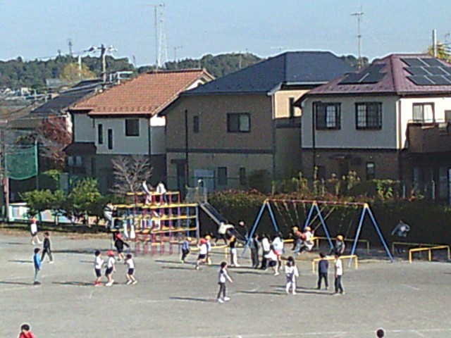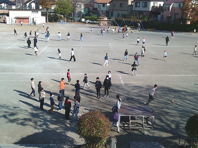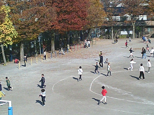20日(木)昼休みの様子です。リハーサルの緊張がとけ、子どもたちは校庭で鬼ごっこをしたり、ドッジボールやサッカーをしたりしていました。担任の先生も加わって一緒に遊ぶ姿もありました。